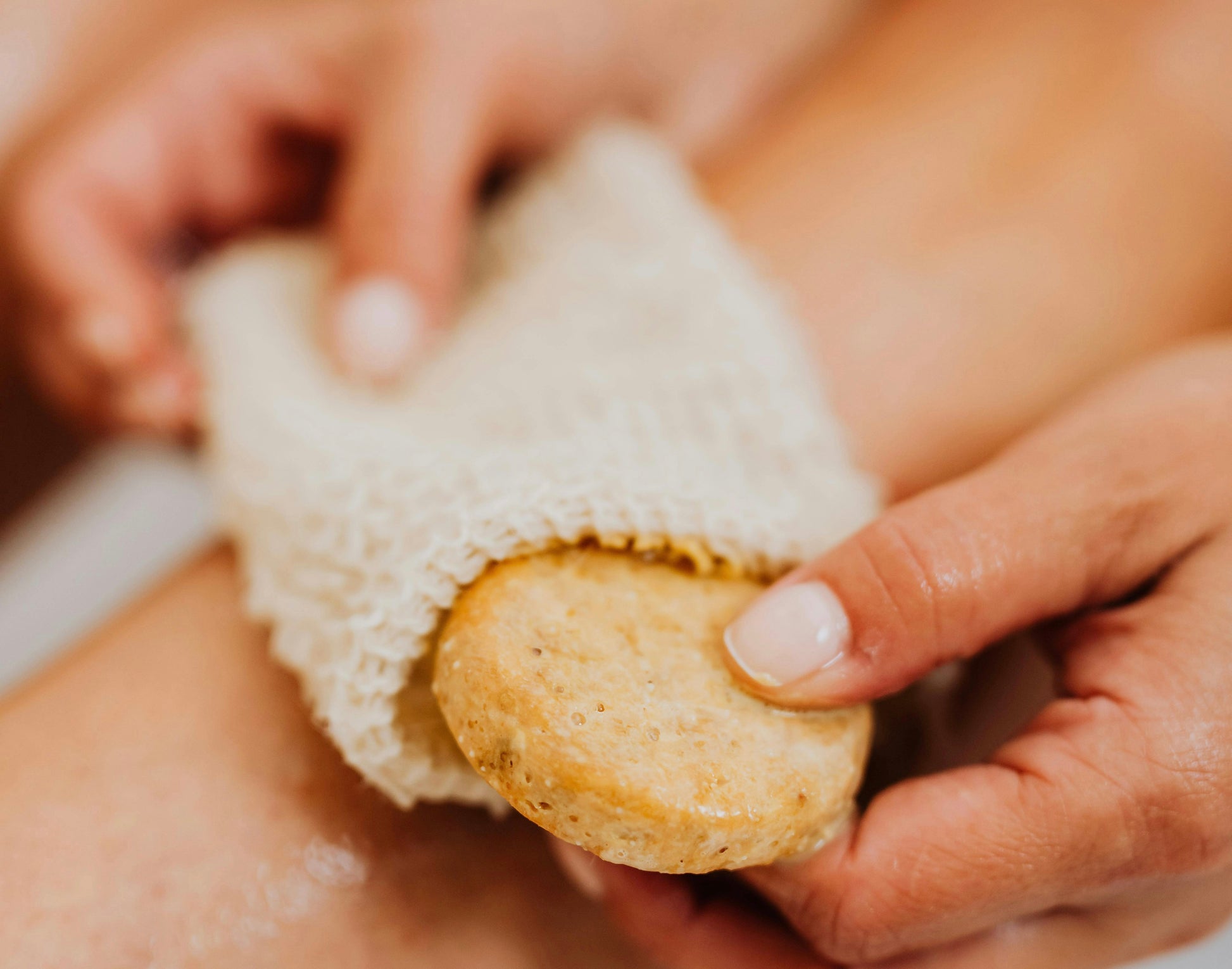Place your soap bar or leftover soap pieces into the sisal pouch, pull the drawstring closed, wet it, and lather directly onto your skin. After use, simply rinse and hang it up to dry using the drawstring loop.